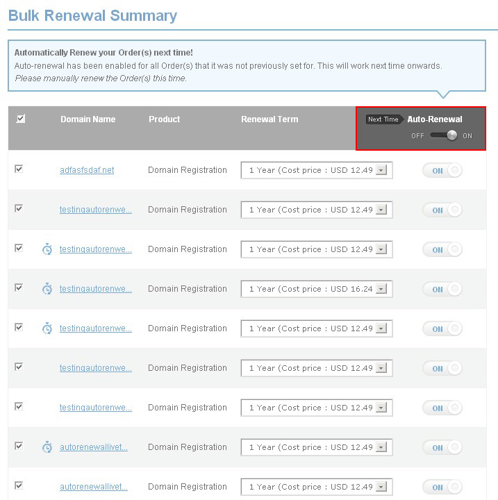 ResellerClub - China's Auto-Renewal feature allows Customers / Sub-Resellers to let the system automatically Renew an Order prior to Expiry.