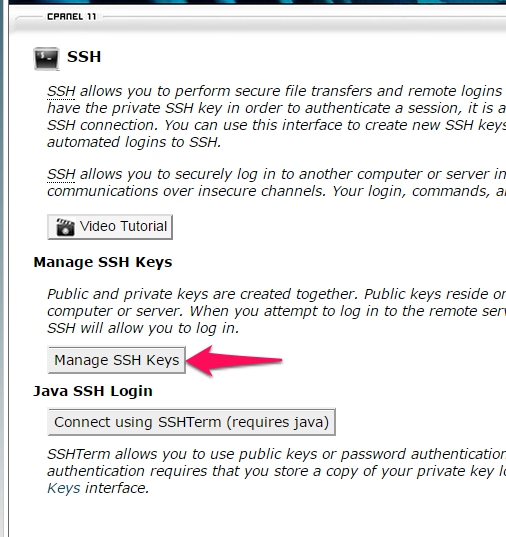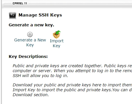 Upload the public key to the hosting server from the cPanel, using the Import Key option