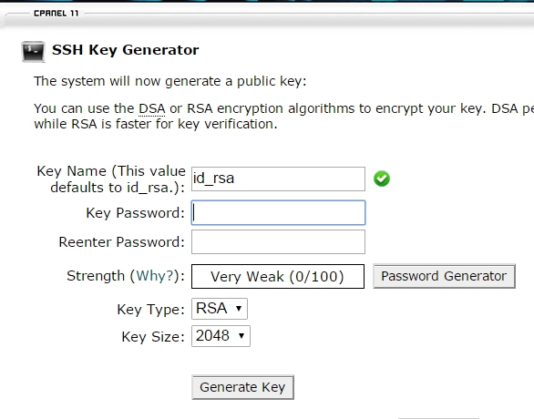 Generating public/private dsa key pair. Enter file in which to save the key (~/.ssh/id_dsa): Press [Enter] key Enter passphrase (empty for no passphrase): Press [Enter] key Enter same passphrase again: Press [Enter] key Your identification has been saved in ~/.ssh/id_dsa Your public key has been saved in ~/.ssh/id_dsa.pub The key fingerprint is: <some string>