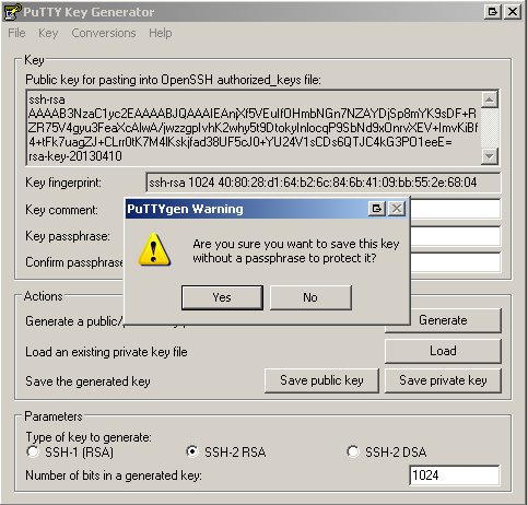 Click Yes on the window asking for confirmation for saving the key without a password.