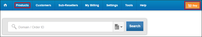 The Express Cart can be reached by clicking on the Buy button in the Reseller Control Panel on the top right. Alternatively, all Buy links within the Products menu default to the Express Cart for Resellers.